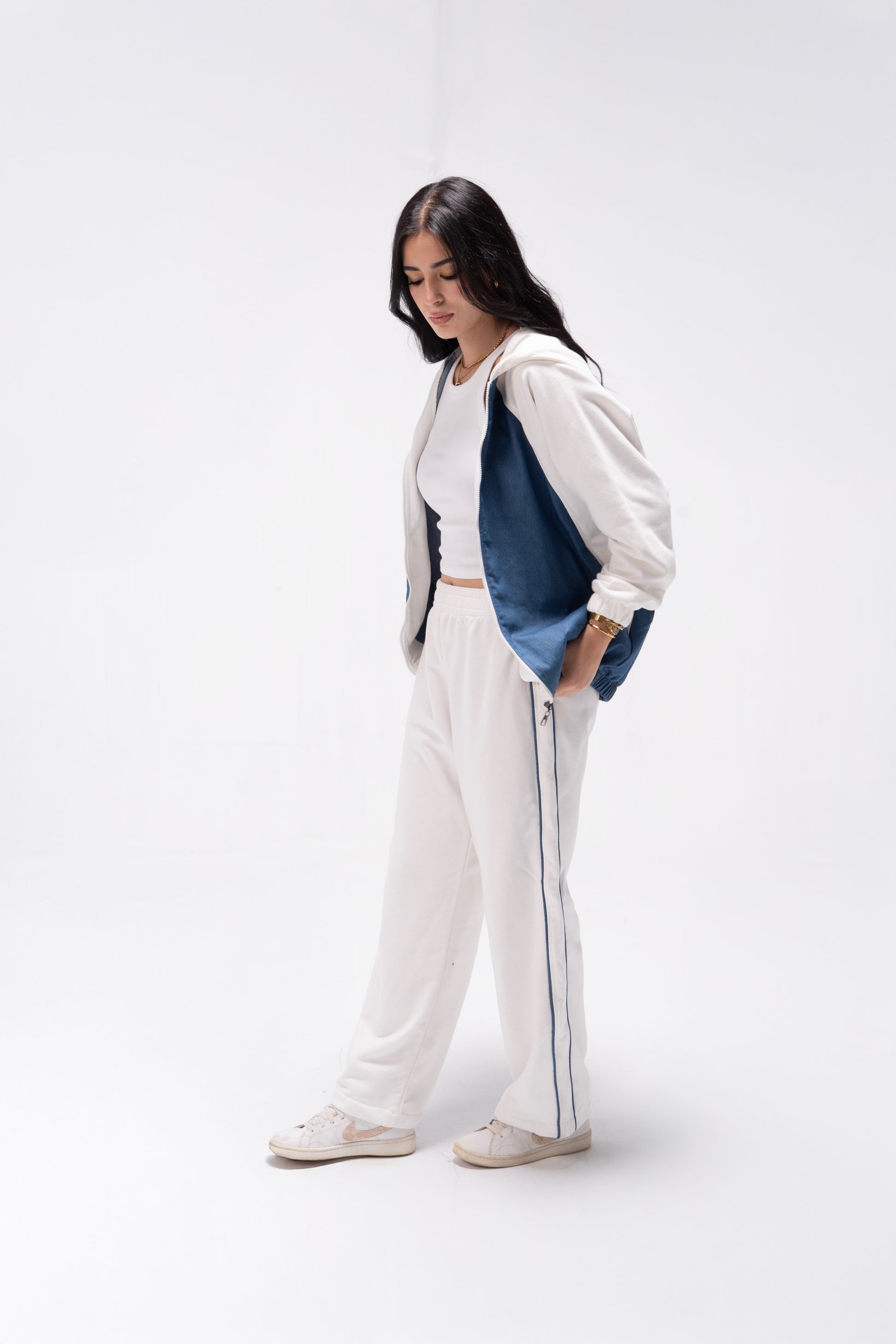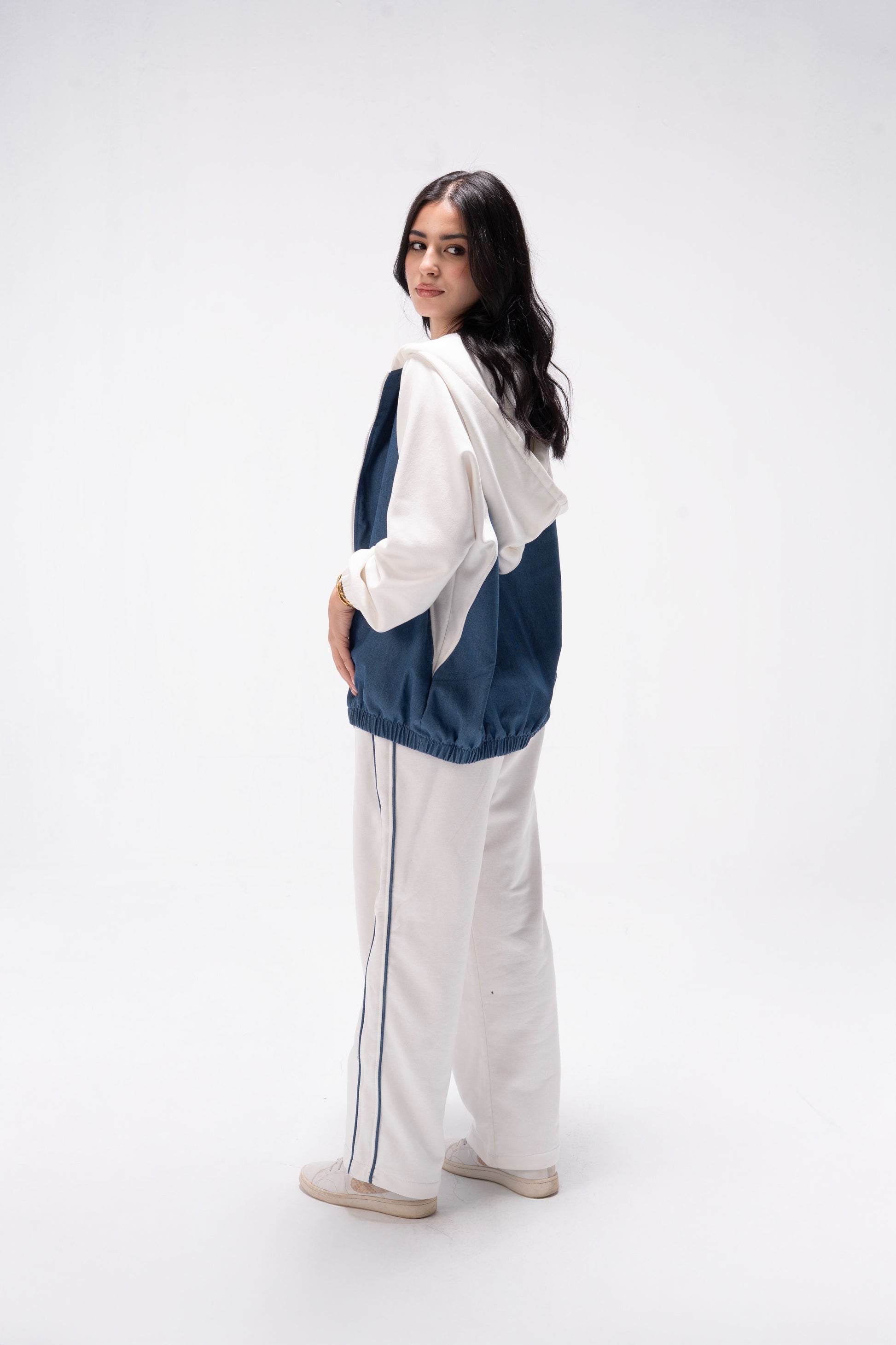 Step into comfort and style with our Trio Vibe Set – a versatile 2-piece tracksuit designed for women who want to look chic while staying effortlessly comfortable. Crafted from a soft, breathable cotton blend with a cozy fleece finish, this set features a relaxed-fit hoodie with front zipper and matching wide-leg joggers with contrast side stripes for a sleek, sporty touch.