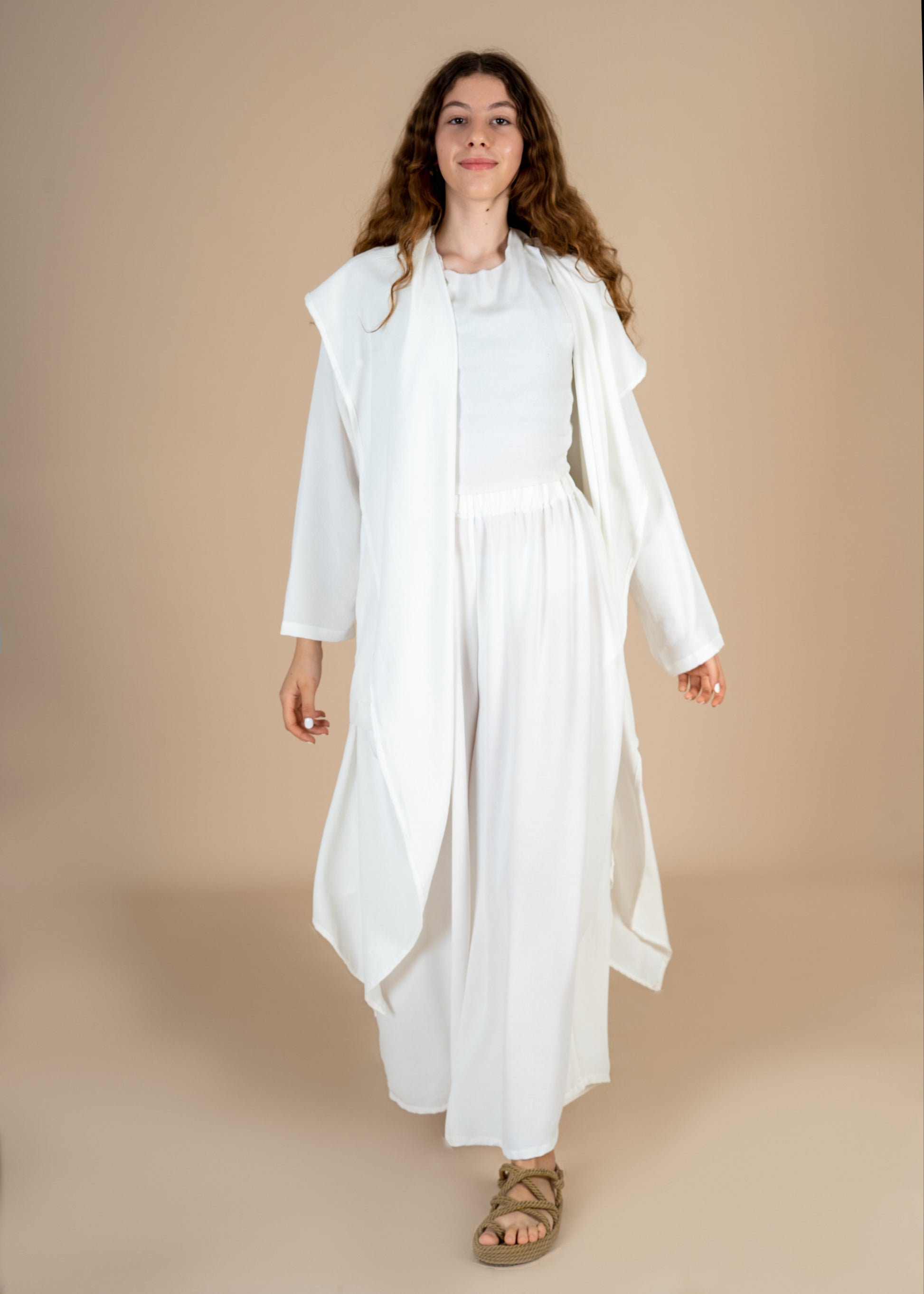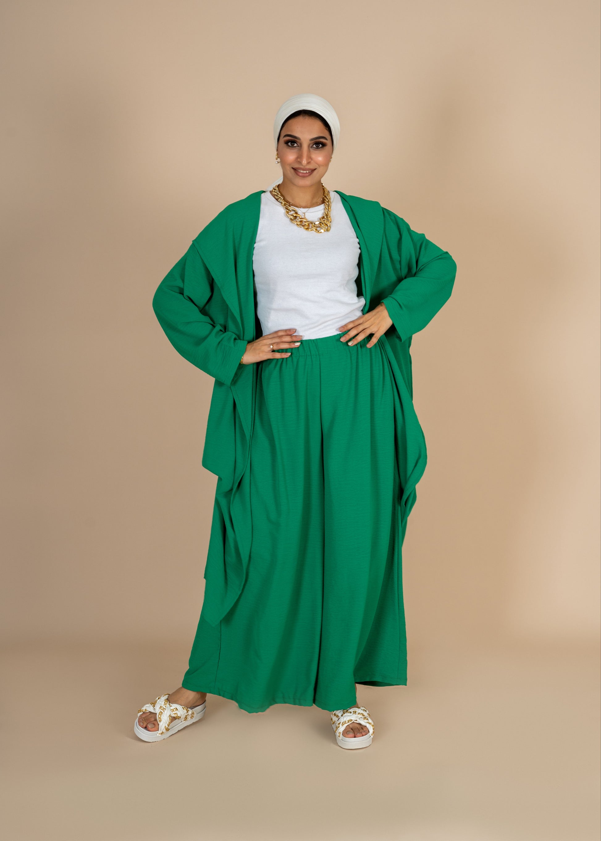 Stay cool and effortlessly stylish in this casual summer set, crafted from soft, breathable fabric. The lightweight hooded cardigan features roomy pockets and relaxed lines, while the wide-leg pants offer all-day comfort with an elastic waist. Designed in fresh, summery colors—perfect for laid-back days, travel, or cozy outings.