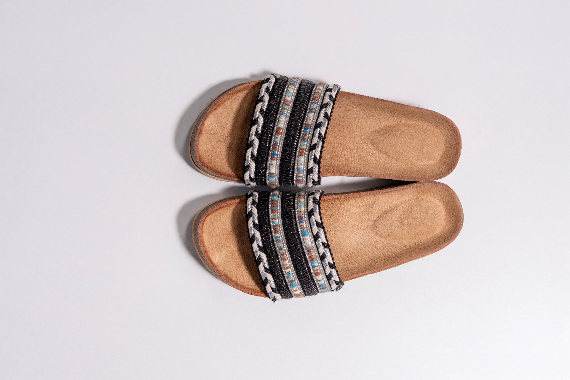 Hand-embellished upper with multicolor beads and braided trim